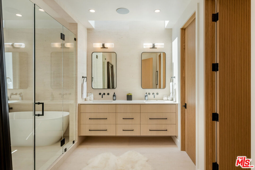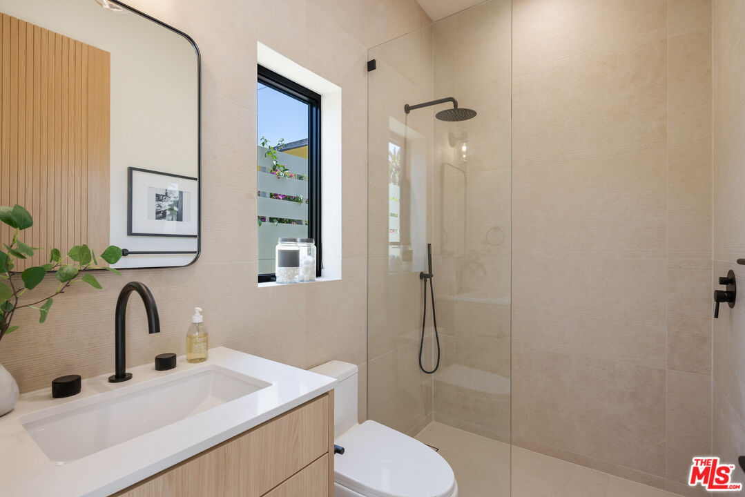 Welcome to your new coastal lifestyle in the heart of Venice, where warm organic finishes, striking architecture, and elevated design converge just blocks from the sand. Inspired by desert-modern aesthetics, this brand-new residence offers rare privacy and effortless indoor-outdoor flow, all wrapped in a relaxed, sophisticated tone that defines modern Venice living. A grand entry opens to an expansive, light-filled floor plan with oversized Italian porcelain tile, a media lounge, formal dining area, and an open-concept kitchen outfitted with Wolf and Sub-Zero appliances, custom cabinetry, a walk-in pantry and an oversized island that anchors the fire-lit living space. Fleetwood-style retractable glass doors dissolve the boundary between indoors and out, unveiling a lush resort-style backyard with a custom pool and spa, built-in al fresco dining, and a fully equipped guest house with corner pocket doors ideal as a creative studio, office, gym, or luxe guest suite. Mature ficus hedges surround the property in complete privacy. Upstairs, floating French oak stairs lead to a sun-drenched primary suite with a private terrace, spa-like bath, custom bar, and a sleek European-style walk-in closet. Three additional en-suite bedrooms, a laundry room, and a central lounge complete the upper level. This smart home features integrated sound, lighting, security, and climate control, alongside energy-efficient systems for modern, sustainable living and thoughtfully curated with high-end designer finishes throughout. Set on a rare oversized lot just blocks from Abbot Kinney, Rose Avenue, Erewhon, and the Venice Boardwalk, this home is the perfect blend of architectural distinction and coastal convenience. Whether you're entertaining under the stars or unwinding by the pool, every inch of this home is designed to elevate Venice living to its highest form.