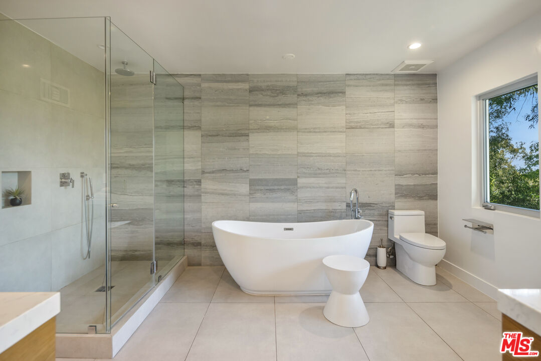 CALLING ALL OFFERS 12/10 at 5PM - Fully Restored Modern Mid-Century home with panoramic views, perched on a tree-lined XL-lot in the prestigious Hollywood Hills, this impeccable masterpiece captures breathtaking city views throughout. Designed by an award-winning team, no detail was overlooked in elevating both form and function. On the main level, discover an airy open floor plan graced with wide plank oak flooring, a soaring double height living room framed by clerestory windows, a dedicated executive office, and a sun filled dining area. The chef's kitchen dazzles with top tier Jenn Air appliances, quartz countertops, and seamless indoor-outdoor flow to an expansive deck ideal for chic entertaining. Two generously sized bedrooms feature abundant closet space, accompanied by a luxurious full bath, a stylish powder room and a large 2 car garage. A level below, the serene master suite commands privacy and refinement including a full walk-in closet and a spa-caliber en-suite designed for relaxation. Set on one of the most coveted streets in the neighborhood, this home offers both privacy and prestige, perfect for the most discerning buyer seeking timeless elegance and modern comfort.