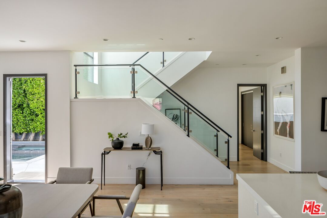 Experience elevated living in Prime Beverly Grove. This newly constructed, gated modern architectural residence offers a rare blend of privacy, scale and refined design. Walls of glass and soaring ceilings flood the interiors with natural light, while wide-plank hardwood floors, designer tile and curated finishes create a sophisticated, contemporary palette. The open two-story floor plan (plus basement media/screening room) flows beautifully for both relaxed family life and grand gatherings. At the heart of the home is the chef's kitchen featuring top-of-the-line Viking appliances, elegant countertops, a massive center island, three ovens, dual sinks and a large walk-in pantry. Fleet wood sliding doors from the living room open to a private backyard retreat designed as a true resort setting with a full-size pool and spa, fire-pit, built-in BBQ, tranquil waterfall and a shaded cabana enveloped by mature landscaping, ideal for effortless year-round entertaining. Upstairs, the primary suite unfolds as a private serene retreat, complete with a fireplace, secluded balcony, spa-inspired bath with soaking tub and rain shower and an expansive walk-in closet. Located on a quiet, tree-lined street just moments from West Hollywood, The Grove, and Beverly Center, this modern estate delivers a rare balance of scale, sophistication, and seamless indoor-outdoor living in one of Los Angeles' most vibrant lifestyle settings.