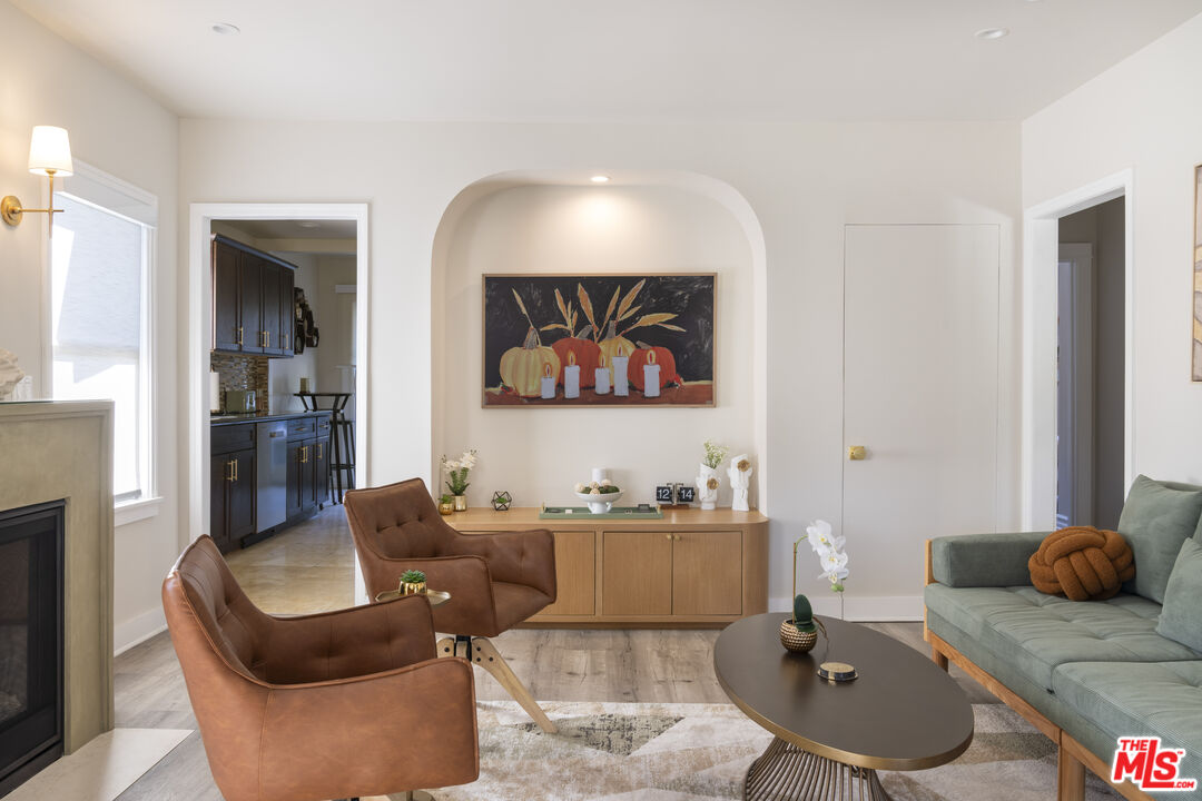 Modern Craftsman Home with Private Outdoor Oasis in Prime Hollywood. Available for lease, this fully renovated 2-bedroom, 2-bathroom residence offers 1,050 square feet of beautifully updated living space with a gated driveway that provides parking for two cars. Ideally located just minutes from Paramount Studios and Larchmont Village, this home blends timeless character with thoughtful modern upgrades. Inside, an open and airy floor plan is enhanced by abundant natural light and curated contemporary finishes that create a warm yet sophisticated atmosphere. The living room features a contemporary fireplace, integrated surround sound, and seamless flow that makes the space ideal for both relaxed living and elegant entertaining, while the kitchen is appointed with high-end appliances and detailed finishes and offers direct access to the private outdoor patio for effortless indooroutdoor living. The patio is designed for effortless hosting and everyday relaxation, featuring an expansive deck, fire-pit lounge, and outdoor dining area. The serene primary suite includes an ensuite bath with a soaking tub, a walk-in closet, and its own private access to the backyard retreat. Situated in one of Los Angeles' most vibrant and convenient neighborhoods, this turnkey gem is available for lease. Schedule a private showing today to experience this rare offering.